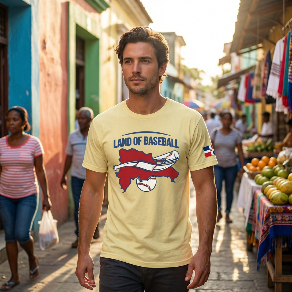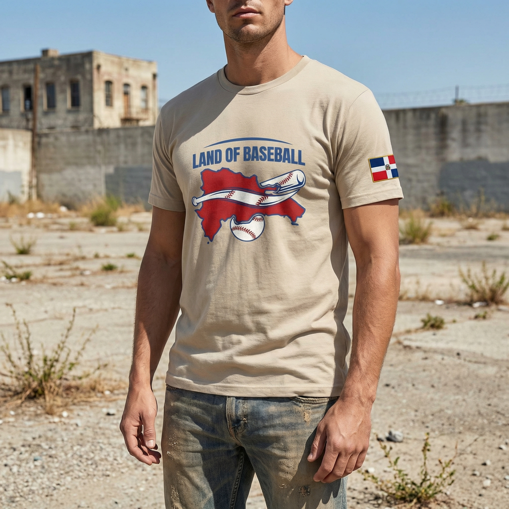 Land of Baseball T-Shirt | Dominican Map – Filled in Red & Blue