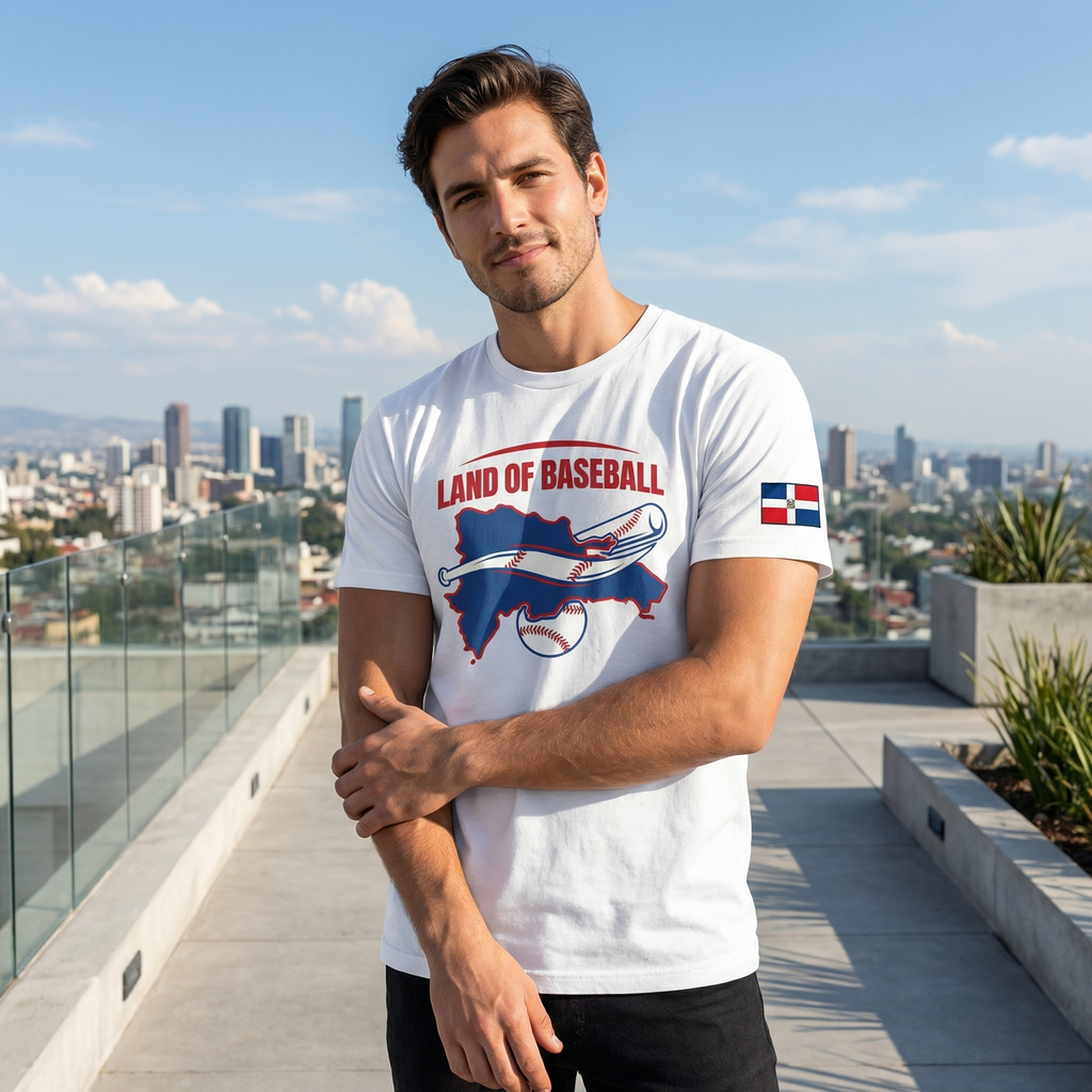 Land of Baseball T-Shirt | Dominican Map – Filled in Blue & Red